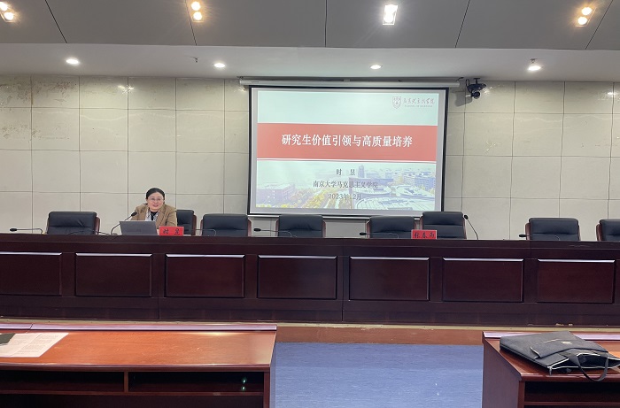 南京大学马克思主义学院党委副书记时昱教授以《研究生价值引领与高质量培养》为题,就研究生工作的发展与推进、研究生阶段容易出现的主要问题、研究生价值引领与高质量培养及构建新型师生关系的典型案例等方面进行分享。报告指出建立良好的“导学关系”是提高研究生教育质量的重要保证,对研究生的成长与发展发挥决定性作用。时昱教授系统阐述了研究生高质量培养的体系建设,分享交流了新型师生关系的构建,这为我校研究生教育发展指明了方向。