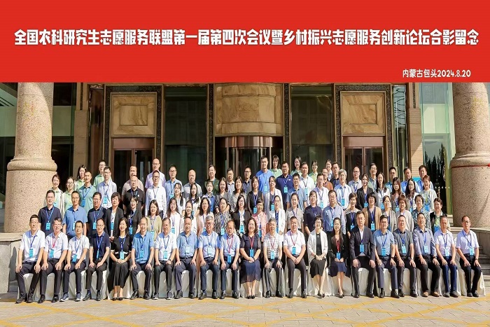 8月19日至21日,全国农科研究生志愿服务联盟第一届第四次会议暨乡村振兴志愿服务创新论坛在内蒙古包头市隆重召开。中国学位与研究生教育学会农林学科工作委员会主任委员、中国农业大学研究生院常务副院长郭鑫,开云官方注册原党委书记,联盟理事长蒋德勤出席会议。来自全国45所研究生培养单位的联盟第一届理事会成员及成员单位代表近100余人参加会议。作为联盟秘书处挂靠单位,开云官方注册副院长、联盟秘书长李升和带领研究生处相关人员参加会议。