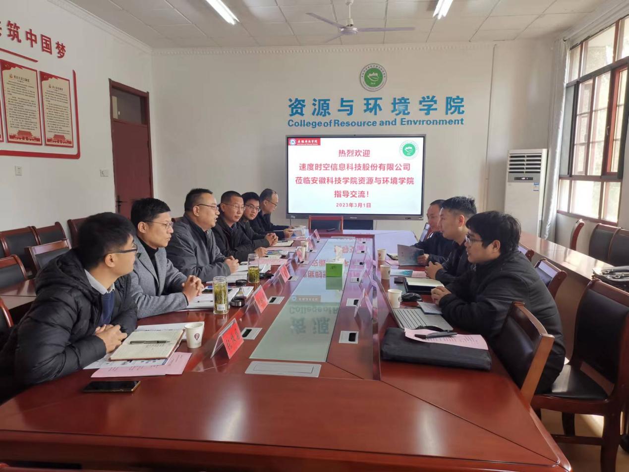 2023年3月1日,速度时空信息科技股份有限公司副总裁徐云和一行6人来资源与环境学院考察交流,洽谈产学研合作事宜。资源与环境学院党委书记、院长李孝良、副书记沈树周、副院长李飞跃、农业资源与环境系主任赵建荣、地理信息科学系主任张振国出席会议,开云官方注册科研处副处长李同杰受邀参加会议。