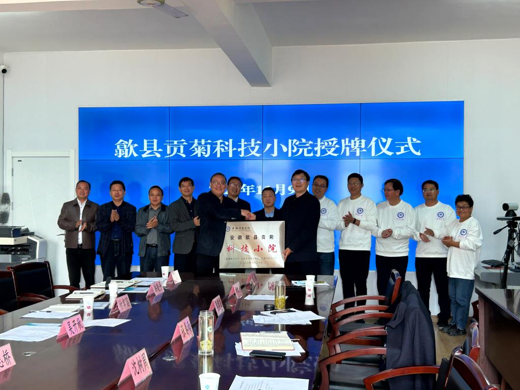 李孝良介绍了科技小院成立的初衷和目的,“贡菊科技小院”的挂牌建设是学校落实省委、省政府提出的“两强一增”行动方案的重要举措,为歙县贡菊发展提出“安科方案”,引导歙县贡菊产业高质量发展,实现学校研究生培养与歙县农业产业发展和乡村振兴双赢。