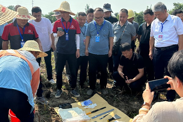 资环师生和当地农业农村局和各乡镇工作人员组成专业抽样小组,在各地市开展土壤表层样品采集工作。工作人员按照流程,分工协作,井然有序,利用专业设备进行确定点位、挖土取样、切块称重、填写标签、上传数据等各项工作。