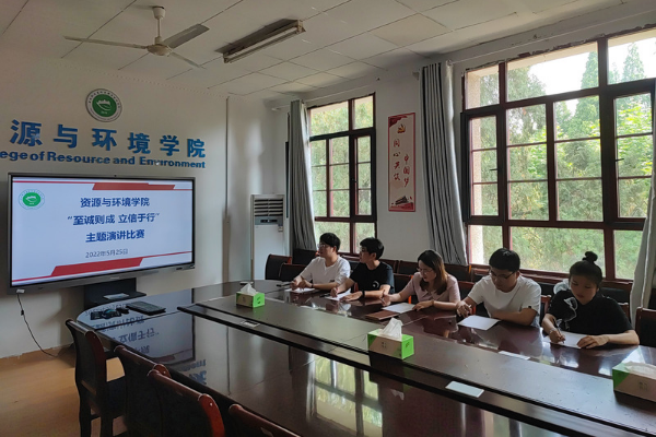 为全面贯彻党的教育方针,加强对受资助学生的诚信教育、感恩教育、励志教育,5月25日,资源与环境学院于学院会议室举办学生资助诚信教育系列活动之主题演讲比赛“至诚则成,立信于行”演讲比赛,资源与环境学院团委副书记杨小晗、第六届学生会执行主席陈汉、高瑶瑶、第七届学生会执行主席刘彪、赵坤受邀担任比赛评委。