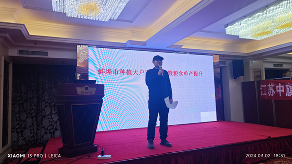 为了进一步彰显蚌埠市农学会的科技引领和社会服务作用,响应国家和安徽省对粮食单产提升的要求,针对今年春季雨雪低温冰冻天气的不利影响,指导农户开展春季田管,蚌埠市农学会于3月2日在蚌埠市举办种植大户春季田管暨粮食单产提升培训会,蚌埠市农业农村局党组成员、总农艺师赵入德,安徽省植保总站防治科科长邱坤,蚌埠市农业技术推广中心主任孙善军,蚌埠市农商银行党委书记、董事长赵静雅,国元保险蚌埠中支委员、总经理助理张克以及蚌埠市种植大户100余人参加了培训会,会议由蚌埠市农学会理事长、开云官方注册资源与环境学院院长李孝良主持。