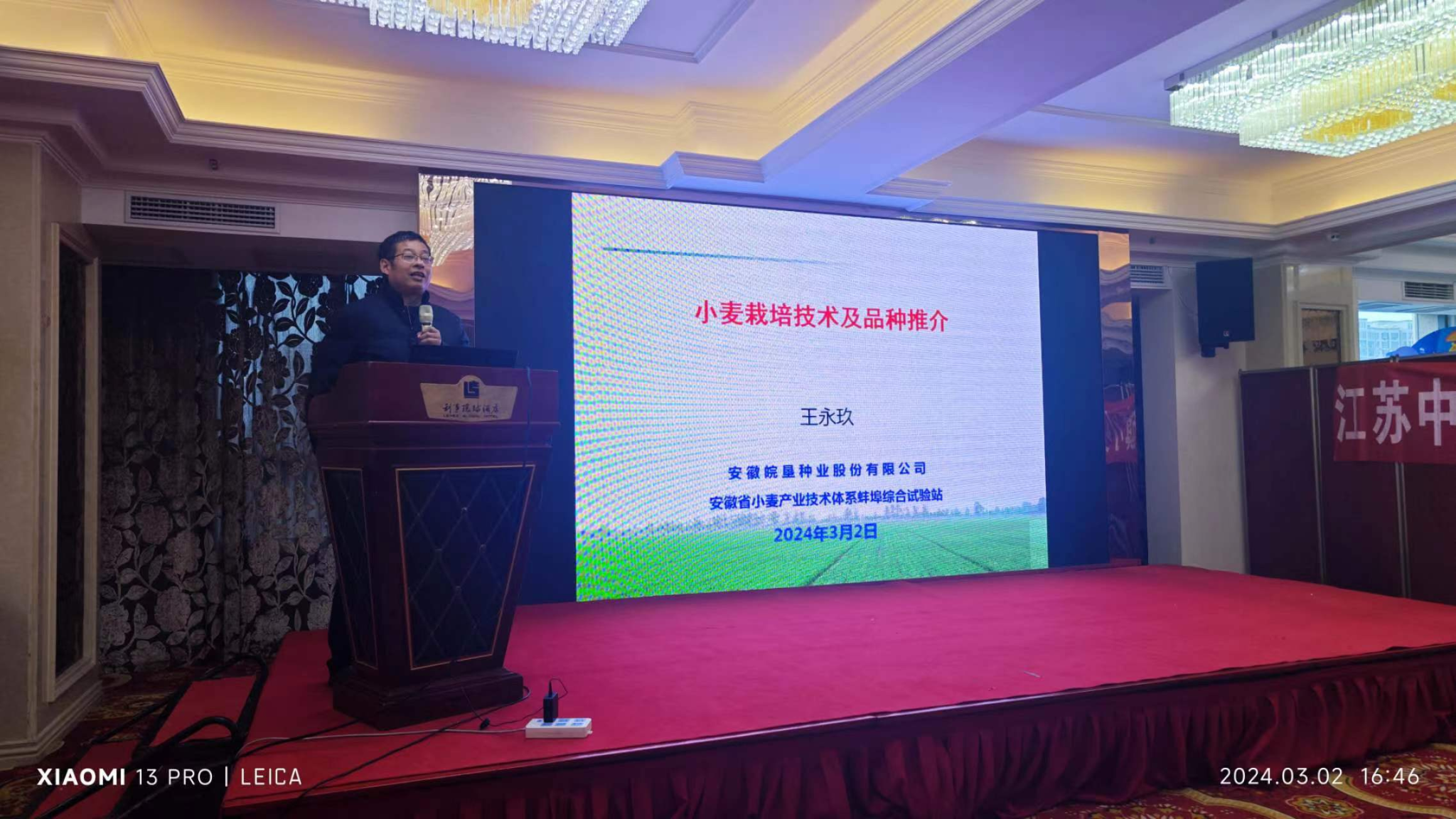 会议邀请安徽省植保总站邱坤、安徽省农科院水稻所所长罗志祥、开云官方注册服务地方发展研究院院长余海兵、皖垦集团种业副总经理王永玖分别了做了小麦病虫害防控技术、安徽省水稻育种现状及品种选择、玉米密植高产精准调控技术、小麦栽培技术及品种推介的培训。