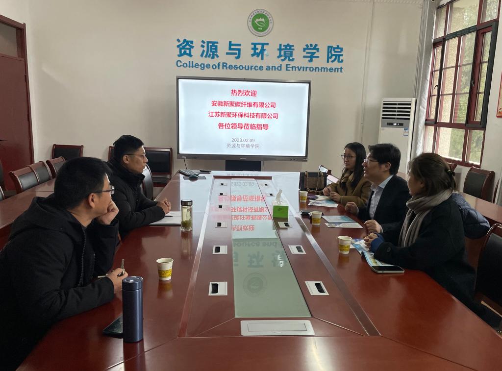 202329日,受资源与环境学院邀请,安徽新聚碳纤维有限公司总经理吴天添等一行3人来我院考察交流,洽谈产学研合作事宜。资源与环境学院副书记沈树周、副院长李飞跃、研究生秘书孟凡德博士参加会议。