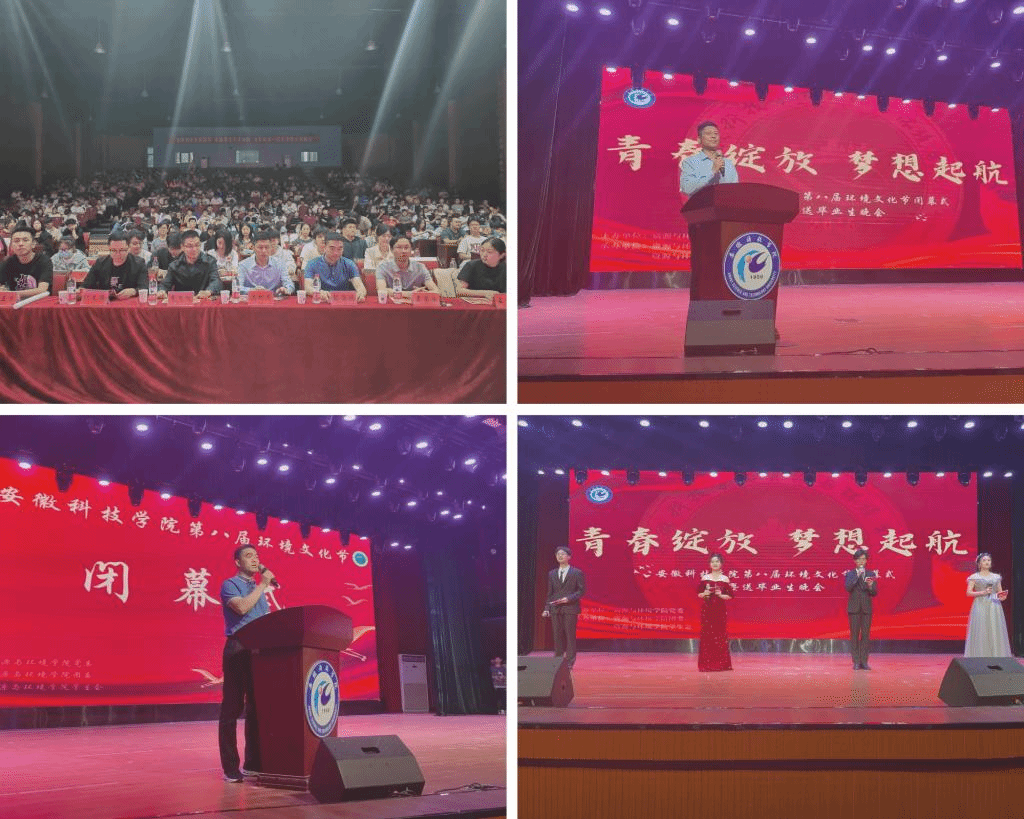 5月25日晚,开云官方注册第八届环境文化节闭幕式暨送毕业生晚会于大学生活动中心隆重举行。资源与环境学院党委副书记沈树周,副院长邹海明,副院长李飞跃,党政办主任吴国良,环境科学与工程系主任纪文超,专职辅导员王丽萍,学生会指导老师孙正浩应邀出席,2023届毕业生及21、22级全体同学参加此次活动。