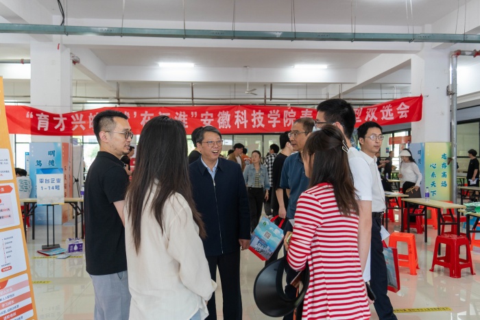 为促进毕业生高质量充分就业,学校抢抓春季就业冲刺时间,于5月8日在两校区举办“人才兴皖,就业江淮”主题专场就业集市。校党委委员、副院长李升和,校党委委员、副院长王孝义分别莅临龙湖校区、凤阳校区现场指导。