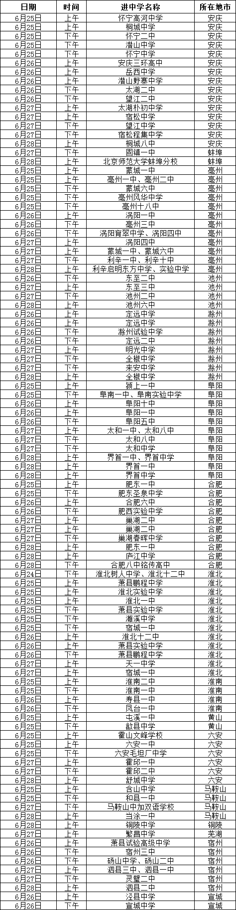 学校在安徽省16个地市,分别派驻招生工作组,进中学开展招生宣讲、志愿填报辅导。各地市招生工作组联系方式如下,欢迎广大同学咨询。
