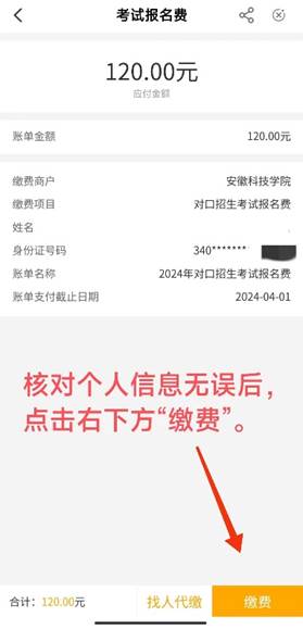 符合报考条件的,缴费成功的考生,学校将在招生信息网“通知公告”栏予以公布,请注意查对,如有问题请于4月2日12:00前反馈(咨询电话:0550-6732041;0552-3197041)。对不按时缴纳考试报名费的考生,学校不安排考试。考生因故不参加专业理论考试和专业技能测试的,不退还报名费。