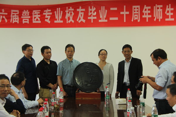 与会校友分别从不同侧面汇报了各自的工作、学习、家庭情况,深情表达了对母校和老师们的问候和祝愿,抒发了对母校和师友间难以割舍的真挚情感,感谢老师们当年的谆谆教诲和培养。座谈会上,96届兽医专业校友向学院赠送了纪念品。聚会期间,校友们兴致勃勃地参观了校园,并合影留念。