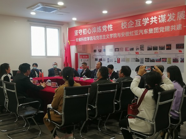 为加强支部党建工作,创新党员学习新模式,拓展思政课教师教学案例编写思路,11月4日下午,马克思主义学院直属党支部全体党员教师前往安徽虹亚汽车集团(蚌埠非公企业党建典型)开展了校企党建学习交流活动。