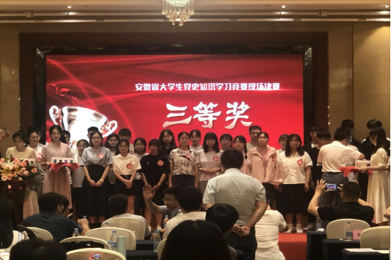 为庆祝中国共产党成立100周年,认真学习贯彻习近平总书记在党史学习教育动员大会上的重要讲话精神,汲取党史营养和力量,按照学史明理、学史增信、学史崇德、学史力行,引导广大学生党员增强“四个意识”、坚定“四个自信”、做到“两个维护”,引导全体大学生传承红色基因、坚定理想信念。安徽省高校网络思想政治工作中心、安徽大学马克思主义学院开展全省大学生党史知识学习竞赛的决赛于2021年6月27日在合肥丰大国际大酒店举行。我校财经学院财务管理193班李绍红同学入围现场决赛,马克思主义学院戴婧佼老师作为指导教师,带队参加比赛。