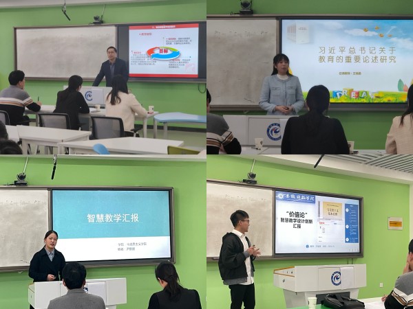 参赛教师以各自课程建设问题为导向,基于智慧教学实践探索,从教学理念创新、线上教学资源建设、信息化教学手段运用、教学评价体系改革、智慧教学创新成效、学生自主学习反馈等方面做了总结汇报,集中展现了马克思主义学院近年来,在线上线下混合式教学模式探索中取得的实践成果,得到了评委专家和观摩教师的高度评价。