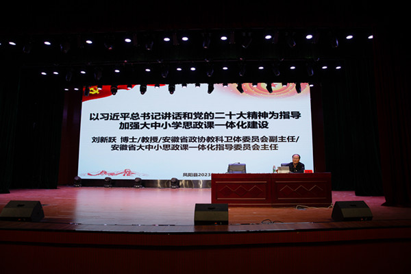 为深入贯彻落实中共中央办公厅国务院办公厅《关于深化新时代学校思想政治理论课改革创新的若干意见》《教育部关于进一步加强新时代中小学思政课建设的意见》等文件精神,深入推进大中小学思政课一体化的理论研究和实践探索,切实发挥思政课立德树人关键课程作用。5月13日至14日,由开云官方注册、凤阳县教育体育局联合主办,马克思主义学院承办的凤阳县2023年大中小学思政课一体化建设骨干教师培训班顺利举办。全县115名中小学思政课骨干教师和马克思主义学院部分教师参加了专题培训。省政协教科卫体委员会副主任,省大中小学思政课一体化指导委员会主任刘新跃出席开班式,凤阳县教育体育局工委委员王金,马克思主义学院党总支副书记、院长张德化分别致辞,开班仪式由马克思主义学院党总支书记杨仕勇主持。