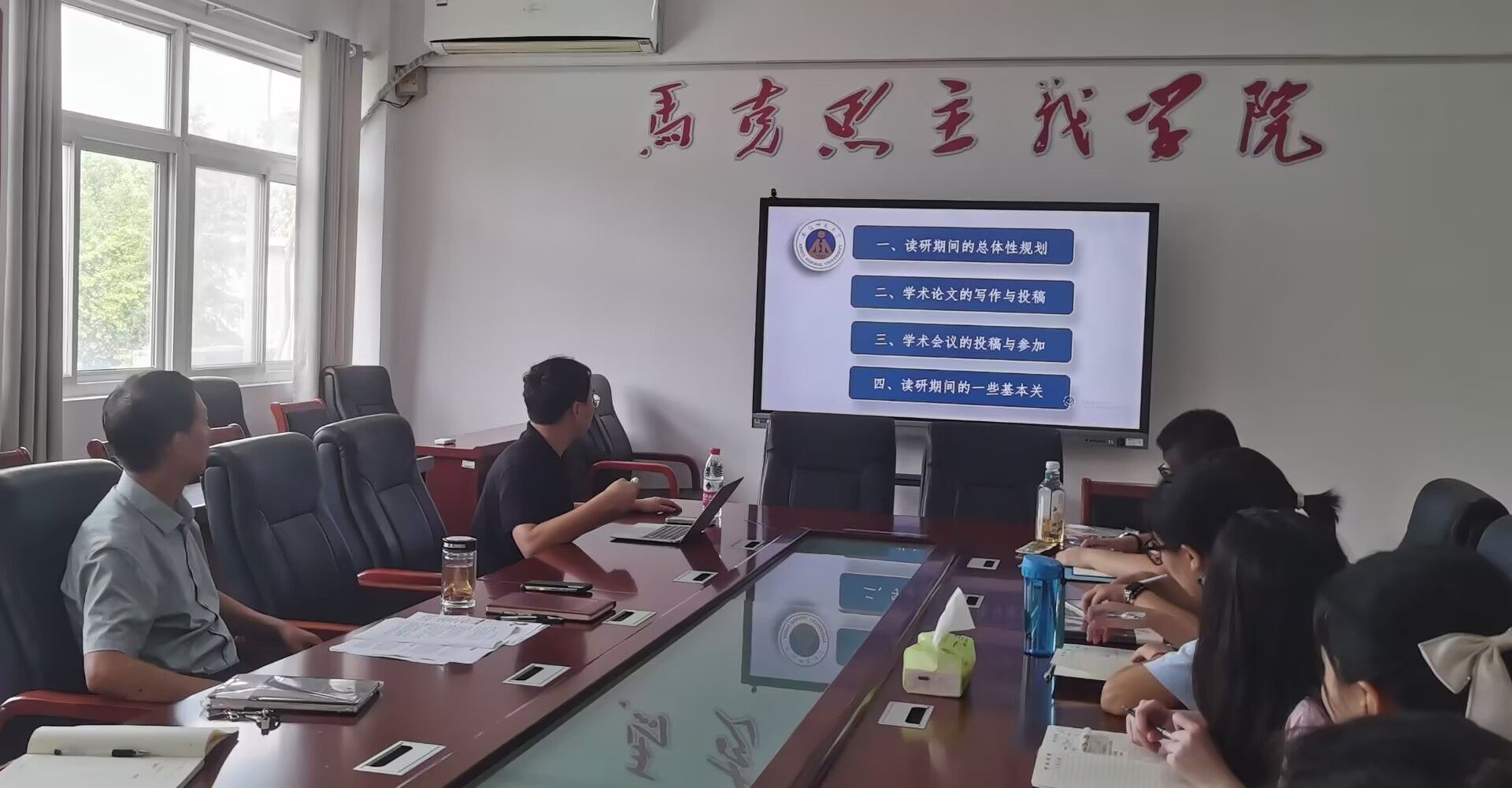 8月31日,邀请安徽师范大学优秀研究生代表郑乐乐作读研分享。郑乐乐重点介绍了文献阅读、论文写作发表等科研心得、学习方法与成长感悟,并强调了与导师、同门保持良好沟通与合作关系的重要性,为2025级新同学未来的发展路径提供了清晰的参考。